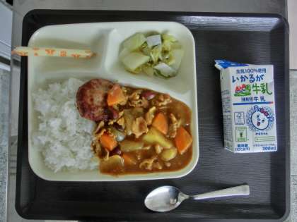 豚肉と金時豆のカレーライス 焼きミニハンバーグ 白菜のピクルス