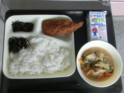 ☆今日の給食では、「いわしフライ」として使用します。骨ごと食