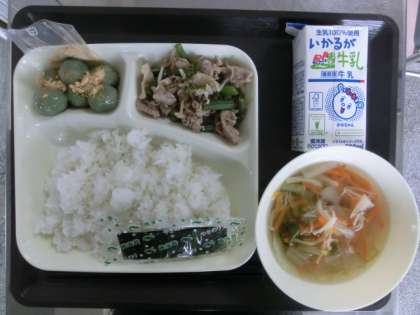豚肉と野菜のいためもの 五目汁 よもぎだんご 焼きのり