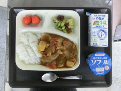 チキンカレーライス ビーンズサラダ いちご ヨーグルト