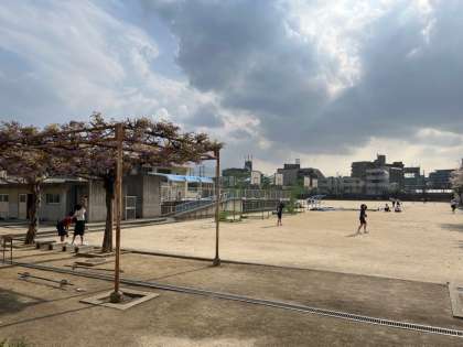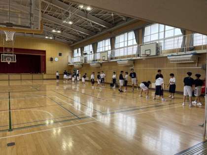 グラウンドや運動場などで、たくさんの一年生が仮入部に参加しています。どの部活にするか、お家の人とも相談して決めましょう。