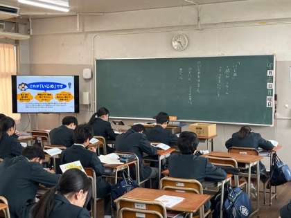 道徳では、いじめについて考える授業をしています。人の気持ちをわかろうとする姿勢が、いじめをなくす第一歩です。