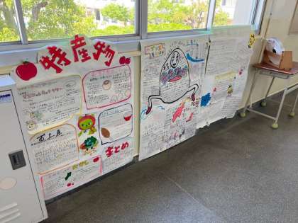 どんなところに行くのか、グループ学習で調べたものを廊下に貼ってみんなで共有しています。