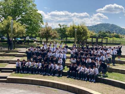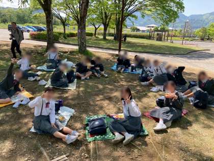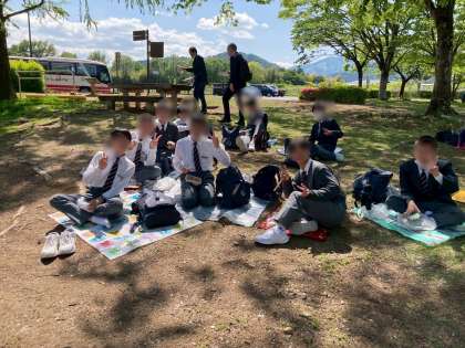 飯田市に到着しました。晴天の中、みんなでお弁当を食べ、ラフティングに向かっています。