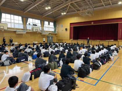 予定より早く到着し、解散式を行なっています。校長先生からは、旅先のスタッフさんからは、マナーよく過ごしてもらったとお褒めの言葉をいただいた、とのことです。あとは一人ひとりが旅を振り返り、個人としての、そして全体としての課題を考えようとのことでした。
