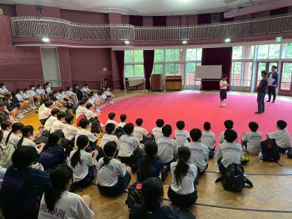 入所式です。一泊移住は、楽しいだけの行事ではありません。集団での活動や、中学生としての振る舞いを学ぶ鍛錬の場でもあります。時には厳しく感じることもあるかとしれませんが、みんなの力になりますので、やりきりましょう!