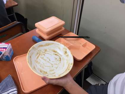 給食が始まってから3年の教室へ写真を
