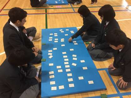 百人一首は教員が詠んでいきます。