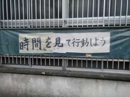 学校の正門を入ると、左手に生徒会の月目標が