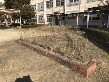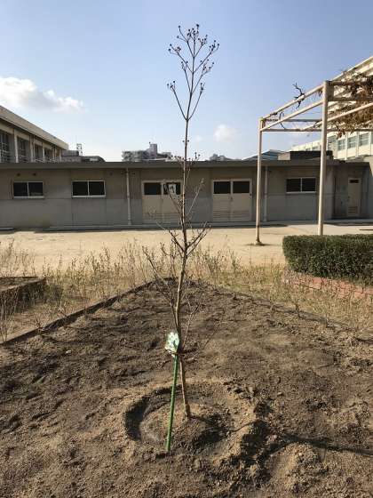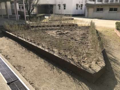 花壇に「白ちょうげ」と中央に「ハナミズキ」を