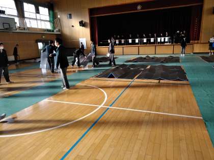 まず、生徒のうちのリーダー数十名が体育館に集合、すぐに
