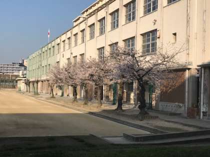 3月末に暖かい日が続いたので、校庭の桜並木も緑の部分が目立つようになりました。一番きれいな時を見せることが出来ないのが少し残念です。
