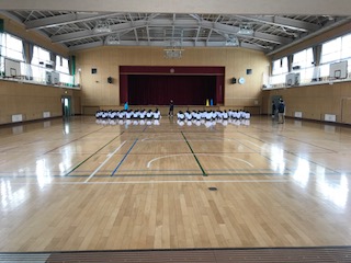 本校では、そういうことはありません。教室で体操服に着替えて、体育館で整列するまで、5分以内にできるよう、最初の体育の授業で練習するからです。