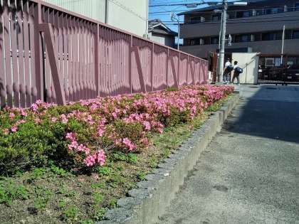 一昨年に植えた正門のツツジがきれいに咲いています。