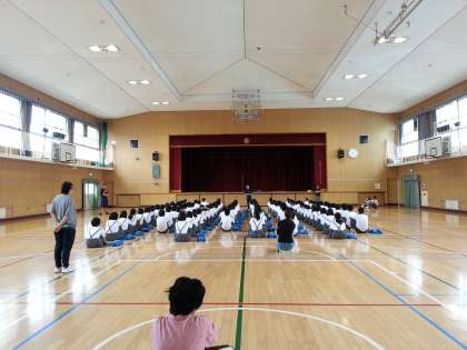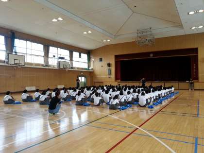学年の先生が「笑顔のあるあいさつ」について話をしています。