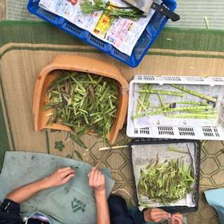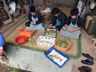 修学旅行 たけのこの皮むき