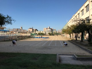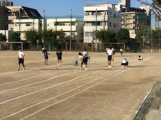 7時前から陸上競技部の生徒がライン引きをしてくれています。