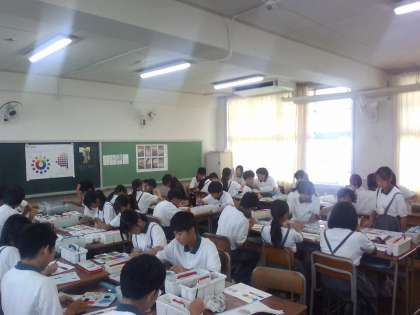 先生や周りの友達と相談しながら、色づくりに集中しています!