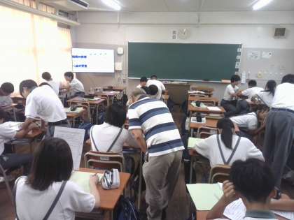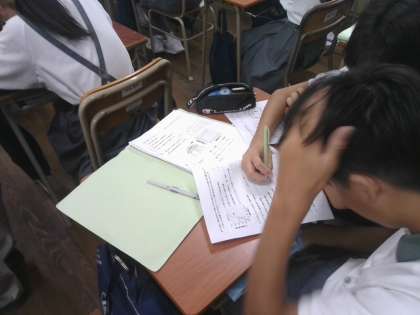 化学反応により質量がどのように変化するについて学習しています。複雑な計算式について、先生や友達に相談したり、教えあいながら、自分の力で理解しようと頑張っています!