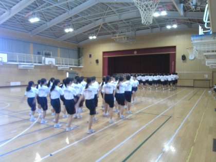 水泳の授業も終わり、今度は10月の運動会に向けて体育館での練習をスタートしています。体育館の外にも響き渡るくらいの大きな声で、中学校生活最後の運動会を全力で成功させようとしています。
