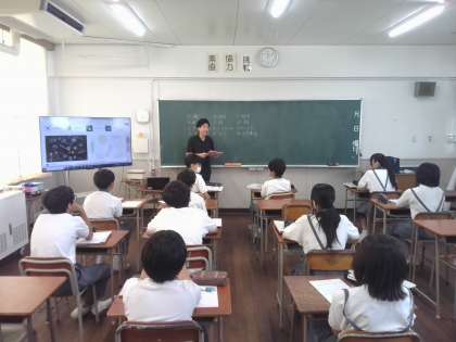 さまざまな水産生物の育成方法について学習しています。「養殖」と「栽培」の違い、わかるかな?