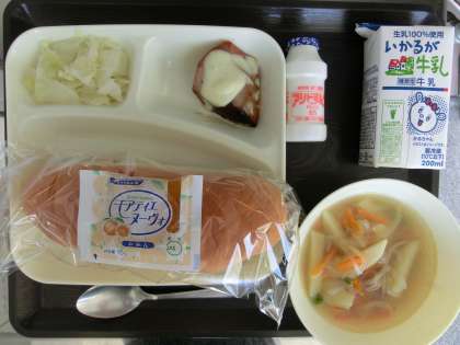 キャベツのサラダ 発酵乳 コッペパン 牛乳 みかんジャム