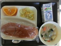 肉じゃが 白菜のゆず風味 白花豆の煮もの ごはん 牛乳