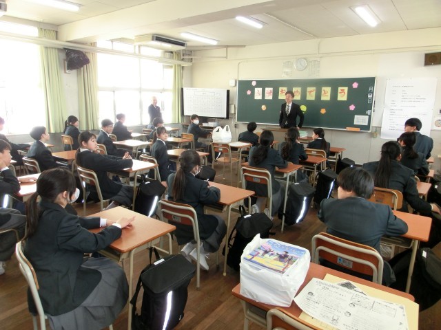晴天と美しい桜が咲き誇るなか、令和8年度入学式が行われました。入学式でもその後の学級活動でもしっかりお話を聞けている人が多く感心しました。勉強も運動も行事も思いっきり頑張って楽しんで、一生の思い出に残る中学校生活にしましょうね!