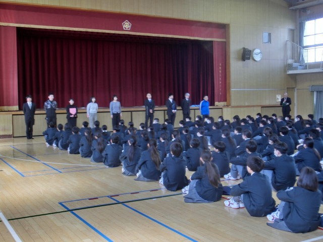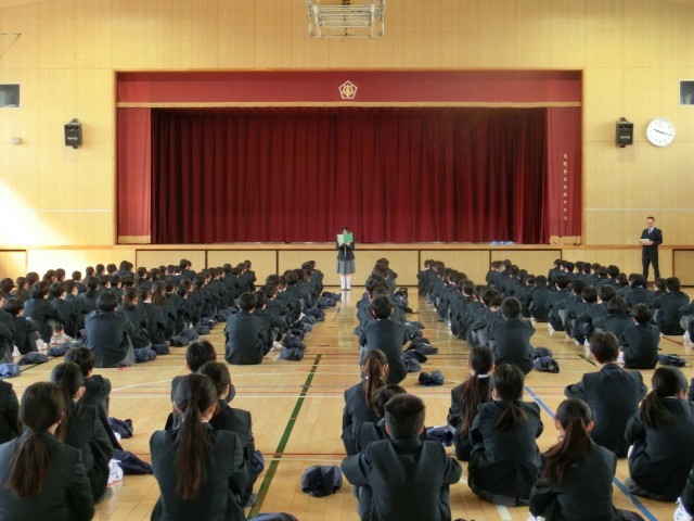 始業式が行われました。クラス発表は運動場で行いました。みなさん緊張の面持ちでクラス一覧のプリントを受け取っていました。始業式では、新転任の先生方の紹介ののち、校長先生からのお話がありました。その後、各学年所属の先生や職員の方の紹介がありました。その後の対面式では、生徒会から歓迎のことばがありました。これから1年、クラスメイト、上級生、先生方と楽しく過ごせるといいですね。明日はオリエンテーション・部活動紹介が行われます。