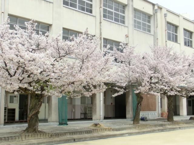 保健室と特別支援教室の前で、長い間咲き誇っていた桜の木々です。
