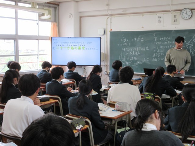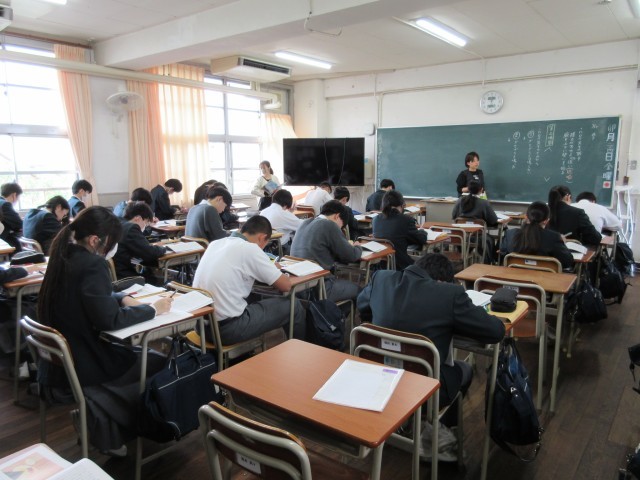 3年生の社会と国語の授業です。社会では、近現代史を学習しています。最近の世界情勢は不安定ですが、そんな時だからこそ歴史を学び、考え、しっかりとした認識をもって生きることが大切です。国語では井上ひさしの『握手』を学習しています。進路(将来)について悩まざるをえない3年生に響く内容ですね。