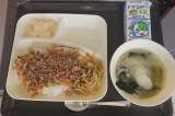 【献立】 ごはん マーボーどうふ きゅうりとコーンの甘酢あえ もやしとピ...