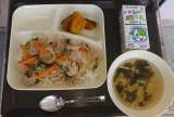 【 献立 】 かやくご飯 じゃがいもの味噌汁 まっ茶ういろう ごはん 牛乳