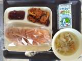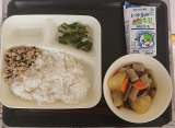 【献立】 豚肉のたつたあげ みそ汁 切干しだいこんのゆずの香あえ ごはん 牛乳