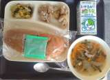 【献立】 なすのミートグラタン スープ ダイスゼリー(ぶどう) パン 牛乳