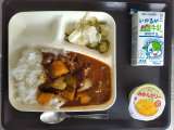 【献立】 夏野菜のカレーライス キャベツときゅうりのサラダ みかんゼリー 牛乳