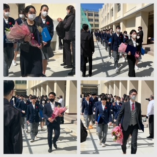 卒業証書授与式☆終了後 公開日 2023/03/14 更新日 2023/03/14 お知らせ 在校生と保護者、教職員がつくる花道を卒業生が通って退場していきました☆ 76期生の皆さん、自分を信じ夢に向かって大きく羽ばたいてください。教職員一同、応援しています♪ いいね(0)