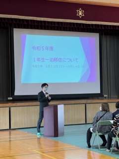 昨日、本校体育館にて一泊移住説明会とPTA決算総会を実施しました。お忙しい中、お時間をお取りいただき誠にありがとうございました。