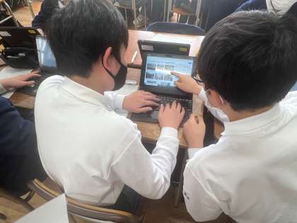 校外学習の行き先について班で調べています。(電車の乗り継ぎなども、自分たちで調べます!)