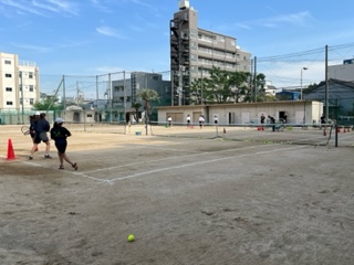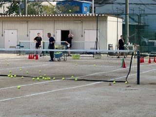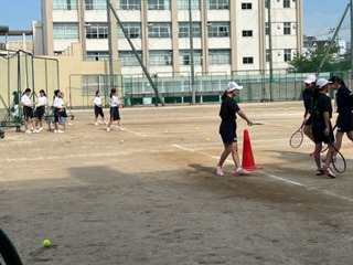 顧問の先生から左右に打ち分けらたボールを打ち返す練習の様子です☆選手たちは、細かなステップを駆使しうまくタイミングを合わせていました♪