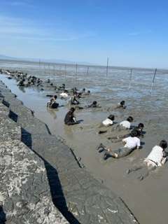 修学旅行☆ガタリンピック5 公開日 2023/05/09 更新日 2023/05/09 お知らせ 最後の競技は、干潟に腹ばいになってのバタフライ競争です☆ほぼ全員が全身泥まみれになっていました♪誰だかわからない! いいね(0)