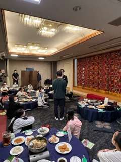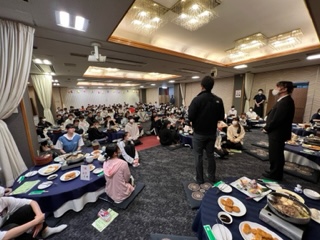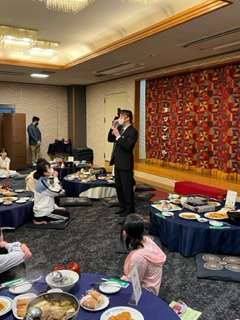 生徒代表あいさつのあと、ホテルの代表の方からお話をしていただきました。一泊二日お世話になります。よろしくお願いします♪