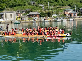 修学旅行☆ペーロン体験学習1 公開日 2023/05/11 更新日 2023/05/11 お知らせ ペーロンとは、中国から江戸時代に伝わったという長崎の伝統行事です。 細長い1隻の舟に約20人が乗り込み、銅鑼と太鼓を打ち鳴らしてリズムを整え櫂を漕ぎ、その速さを競いあいます。今回は、クラスを3班編成とし、2班ずつ対抗で3回競争しました。 どのクラスも気合いが入っています♪ いいね(0)