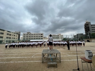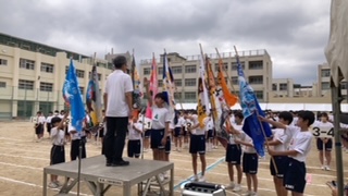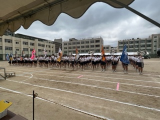 令和5年度第74回運動会がスタートしました。写真は、入場行進・選手宣誓・競技場の注意の様子です♪