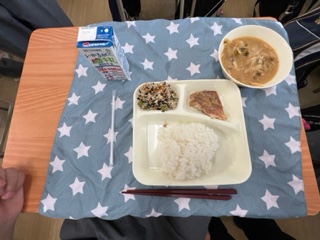 【赤魚のおろしじょうゆかけ みそ汁 米飯 高野豆腐のいり煮 牛乳】