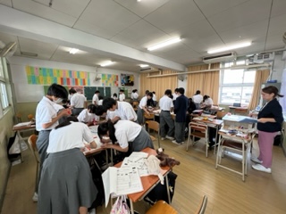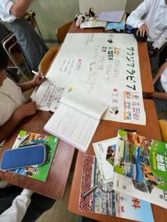 研究授業☆1年生社会科9月8日 公開日 2023/09/08 更新日 2023/09/08 お知らせ 大阪市教育センタースクールアドバイザーにお越しいただき、研究授業を実施しました☆ 写真は、アジアの国々について、調べたことを各班でまとめ、模造紙に書き込んでいるところです。次の時間、どんな発表をしてくれるのか、楽しみです♪ いいね(0)