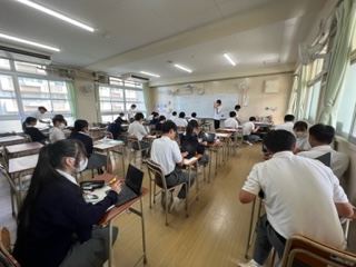 今日の授業☆3年生英語科9月19日 公開日 2023/09/19 更新日 2023/09/19 お知らせ 3年生の英語科の授業の様子です☆写真は、歩きスマホの是非について各自が考え、その理由を英語で答えるために、タブレット端末を活用して取り組んでいるところです! いいね(0)