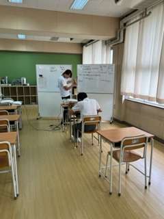 英語科では、「because」の使い方を学習しました。先生の質問にしっかりと答えていました♪