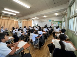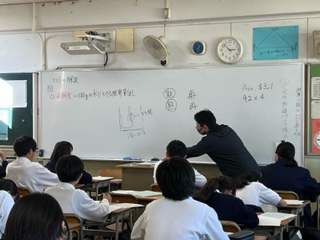 写真は、担当の先生から、間違いやすいところの解説をしてもらっているところです。