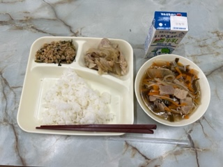 【鶏肉のゆず塩焼き ソーキ汁 ツナ大豆そぼろ